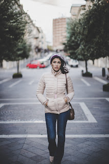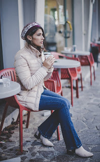 Indossando Un bel piumino caldo sui toni del beige/oro , i miei boots a punta , i denim a zampa larga ed il simpaticissimo  basco con pon pon mi preparo per affrontare questa stagione.