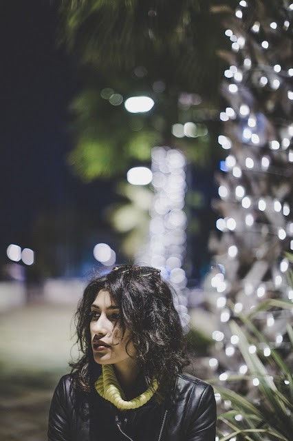Sono andata diretta sul lungomare a scattare foto con le palme ornate di lucine bianche.