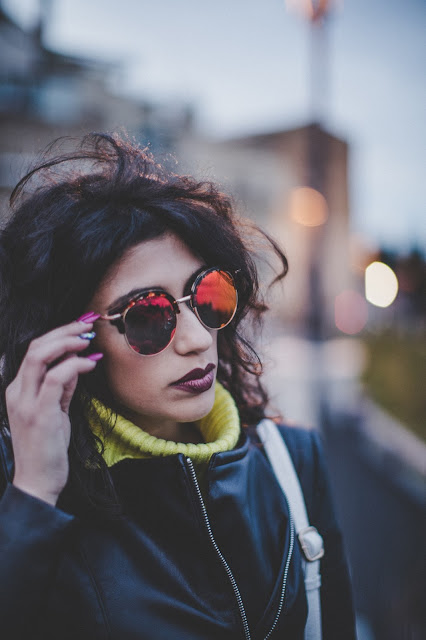 Infine, ho concluso utilizzando degli occhiali da sole a specchio con lenti multicolore.
